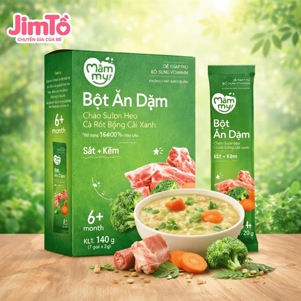 Bột ăn dặm Mămmy sườn heo cà rốt bông cải xanh 6M+ 140g (M.9) (3902586) (N)