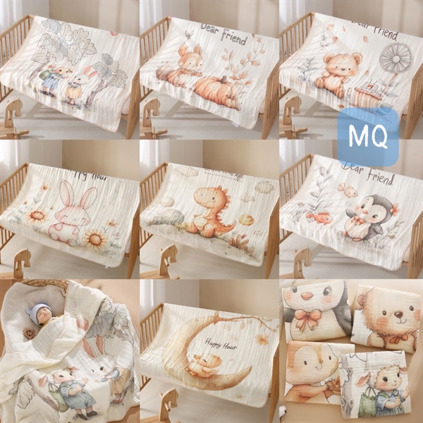 Chăn sợi tre 6 lớp in hình 110x120cm be