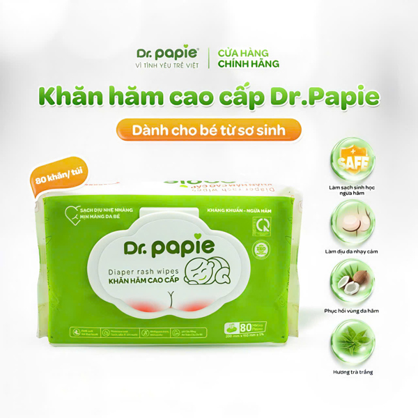 Khăn hăm cao cấp Dr.Papie 80 miếng (0m+) (N)
