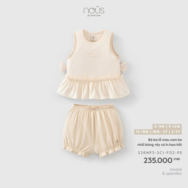 Bộ ba lỗ màu cam be nhồi bông vây cá in họa tiết Nous S26NP3-SC1-F02-PE (6m-3y)