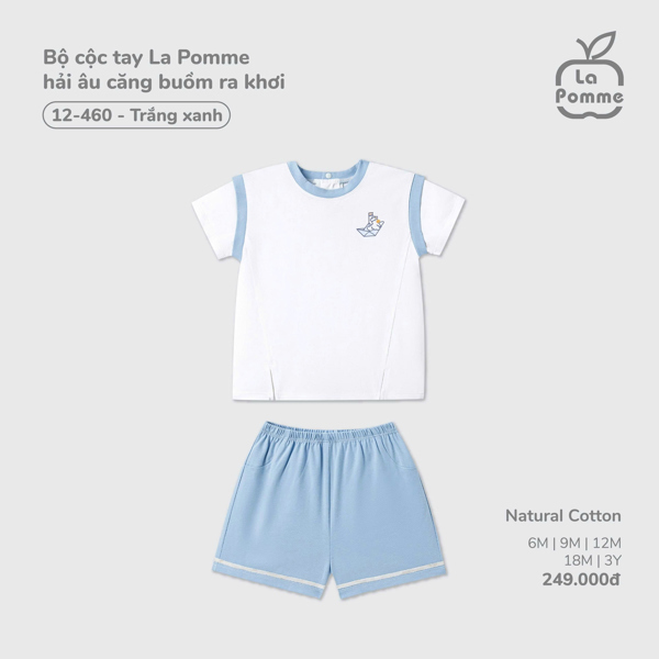 Bộ cộc tay La Pomme 26-12-460 hải âu căng buồm ra khơi trắng xanh (6m-3y)