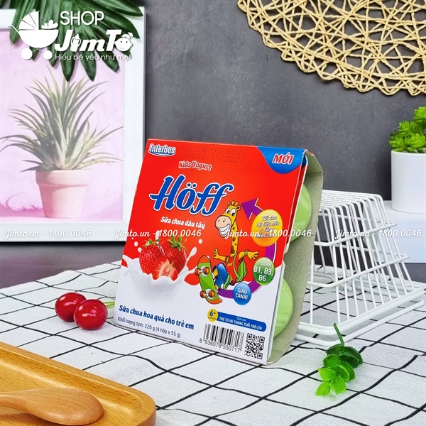 Sữa chua Hoff vị dâu lốc 4 hộp (4x55g) (6M+)