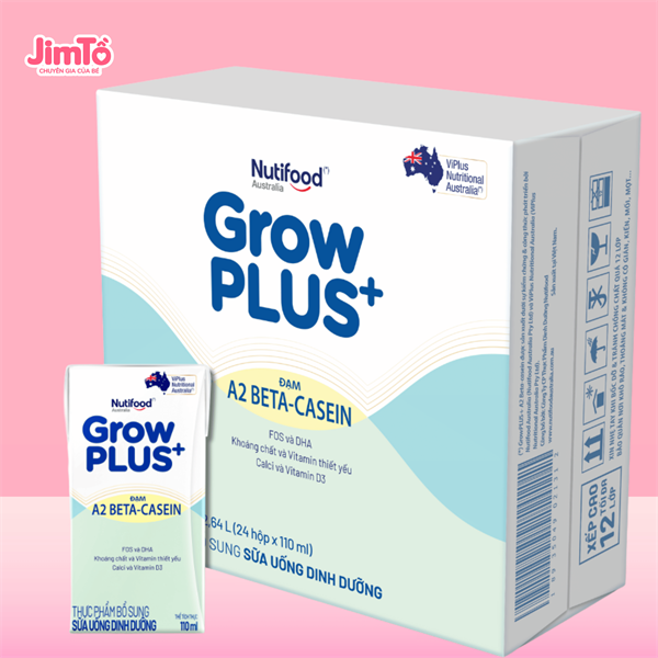 Thùng 24 hộp sữa pha sẵn Nutifood Grow Plus+ A2 BETA-CASEIN 110ml (1Y+)