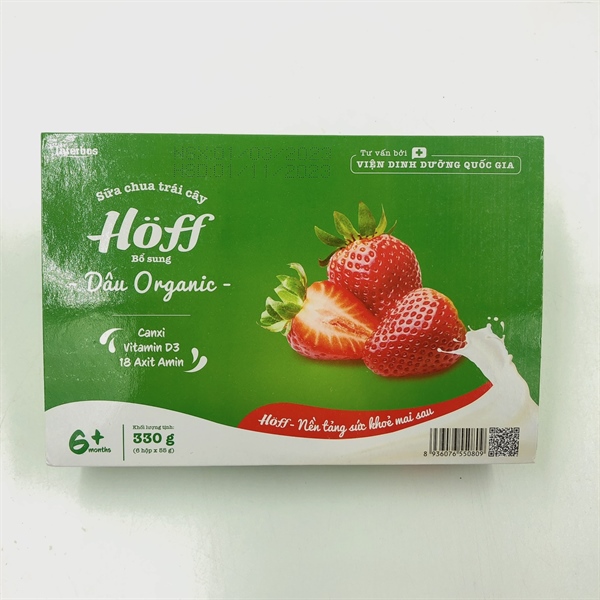 Sữa chua trái cây Hoff vị dâu organic lốc 6x55g (6M+)