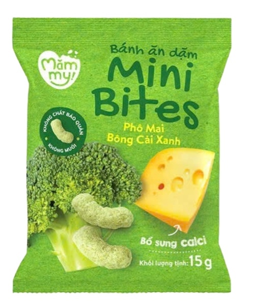 Bánh ăn dặm Mini Bites Mămmy vị phô mai bông cải xanh gói 15g (6M+)