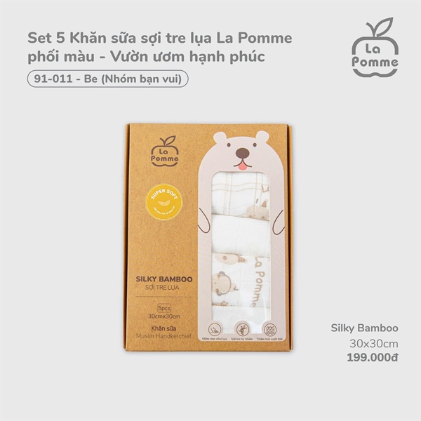 Set 5 Khăn sữa sợi tre lụa La Pomme 91-011 phối màu be nhóm bạn vui (30x30cm)
